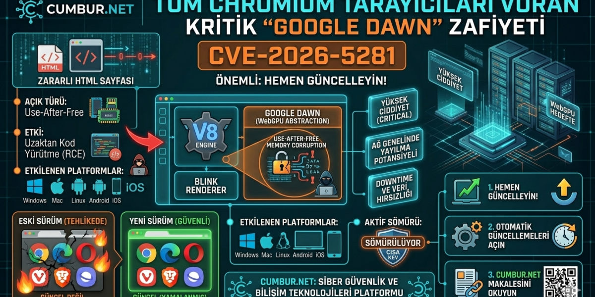 İnternet dünyasının bel kemiğini oluşturan Chromium motoru, siber güvenlik tarihinin en kritik zafiyetlerinden biriyle sarsılıyor. Google Chrome, Microsoft Edge, Opera ve Vivaldi dahil olmak üzere milyarlarca kullanıcısı olan tarayıcıları etkileyen CVE-2026-5281 kodlu bu açık, siber güvenlikte ulaşılabilecek en yüksek tehlike seviyesi olan CVSS 10.0 (Kritik) puanına sahip.